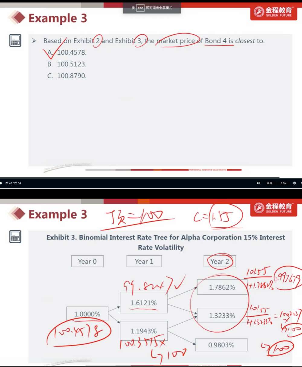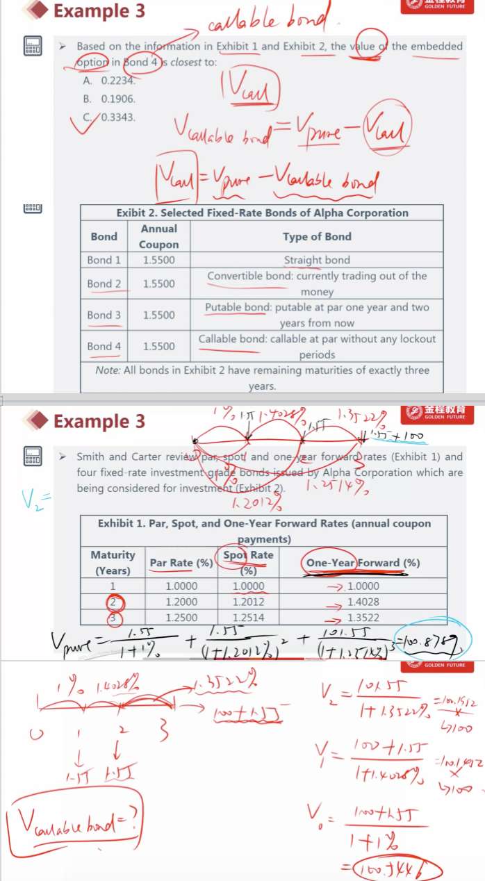 Vcallable=100的原因是0时点就可以行权(但0时点债券价格未知?),还是图二计算得到的价格>100而导致行权?