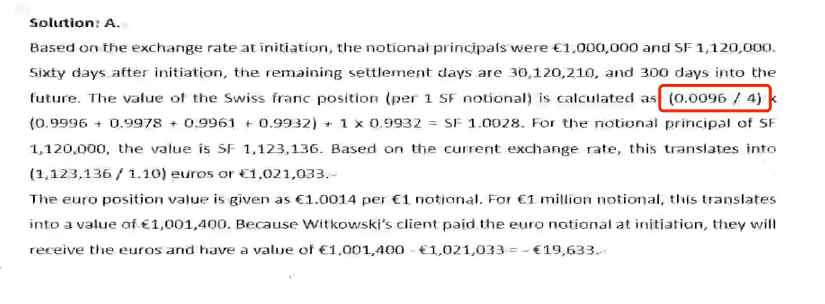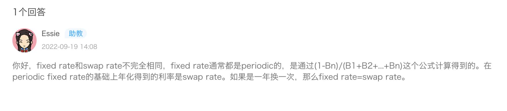 老师好!此道题的最后一小题中,题干里提到了franc的fixedrate是0.96%,此处的fixedrate难道不是periodic的吗?我记得之前,有个老师的答疑是fixedrate一般是periodic的,而swaprate一般是annualized的。但在这道题里,为什么fixedrate是年化的呢?