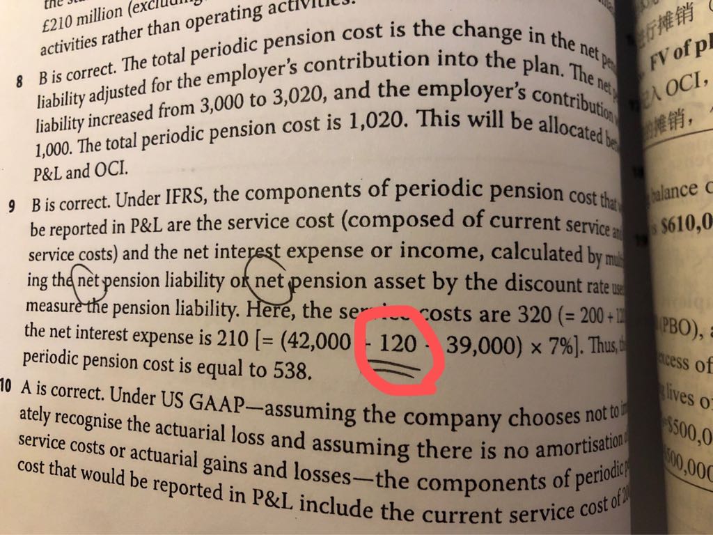 已回答[抱拳]请教,有一道退休金的经典题在算IFRS下的net interest income/expense时,本来应该直接用(PBO-ASSET)×discount rate,但是答案(PBO+P.S.