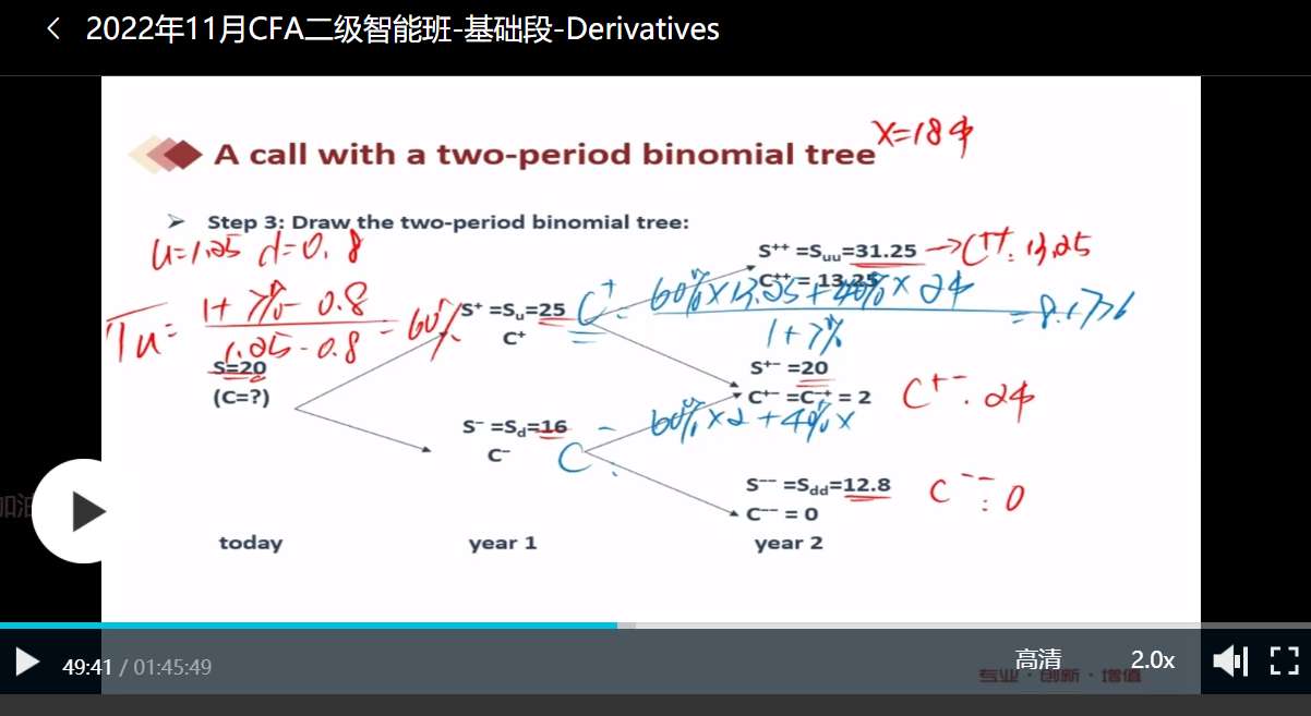 老师,二叉树里year2 和year 3的u,d,πu,πd都是用一样的数?