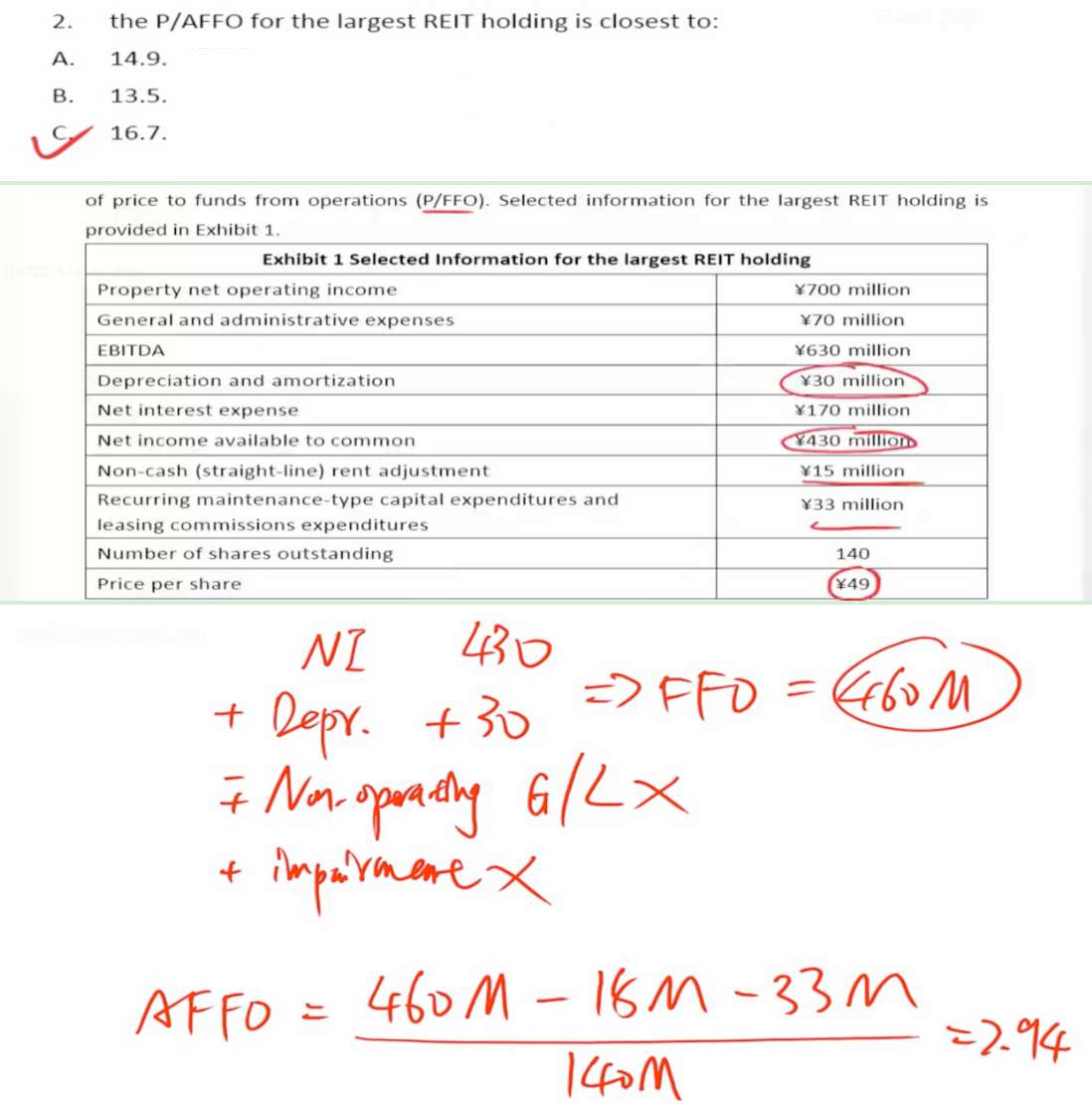 1⃣️15M作为non-cash-loss,为什么不在一开始FFO就调减?放到AFFO才调,那FFO不就不够准确了吗?2⃣️AFFO怎么只调整CFI而不需要扣减CFF?