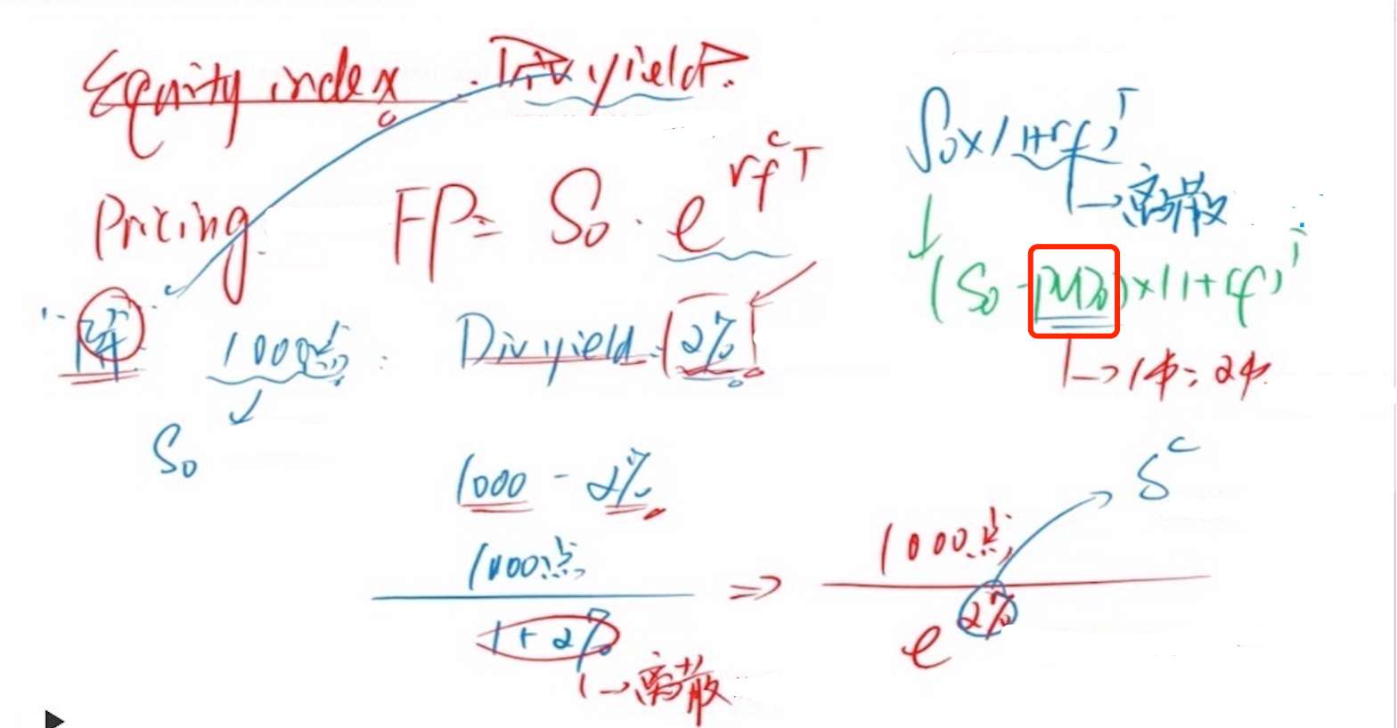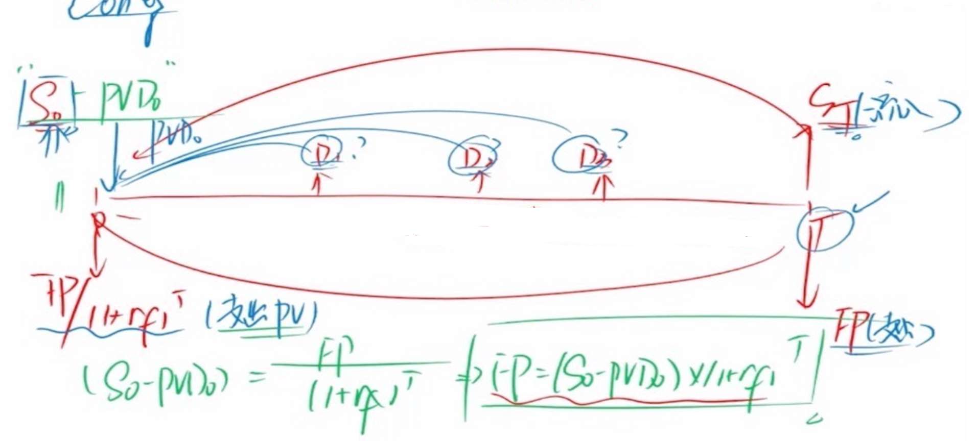 查看试题 已回答离散复利的股票分红要把div折现到0时点得到PVDo,再x(1+rf);为什么连续复利的股息率不用考虑折现问题就直接剔除股息率了啊?既然PVDo=PVDt/(1+rf)^t用的时间是t,那剔除股息率的时候e^δᶜ的时间怎么是T不是t呢?