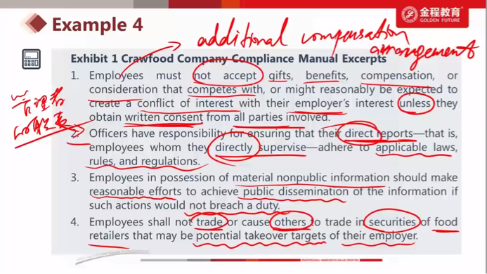 老师 这里MNI 题目原文没有鼓励对方公布的意思 他是说employees should 做到信息公布 那这里和cfa没有一样啊 既然第二项 看字面意思 那第三项也是的呀