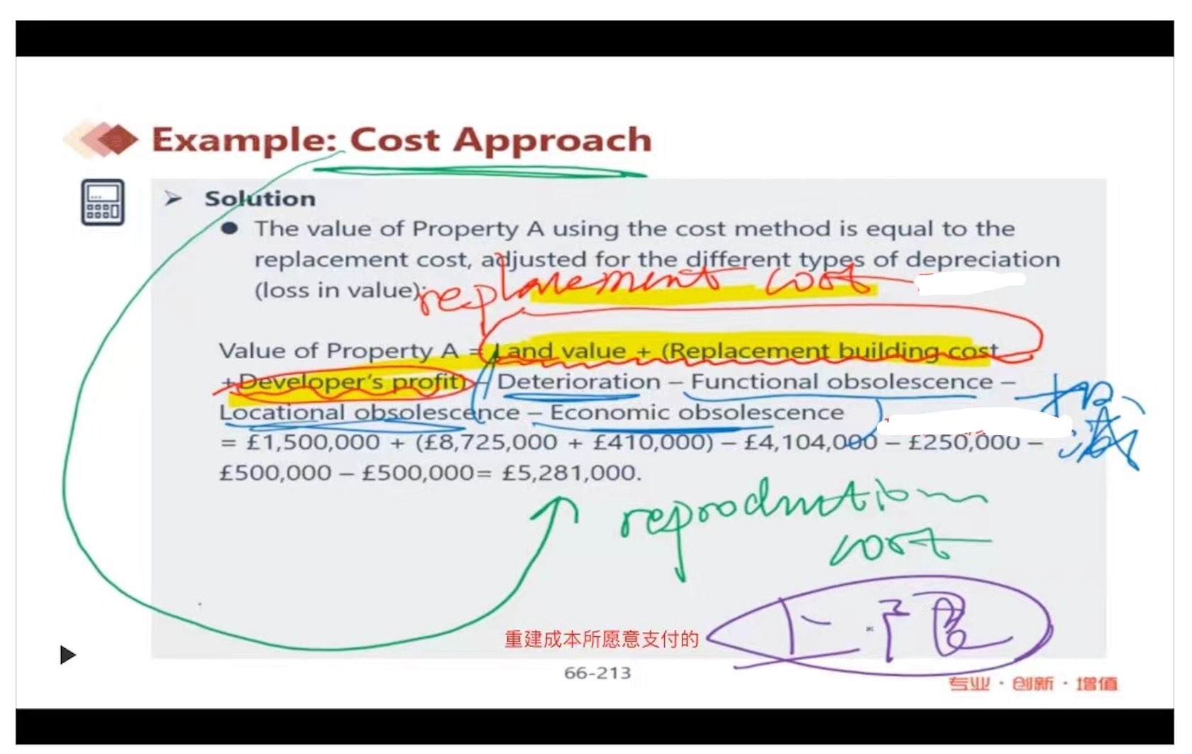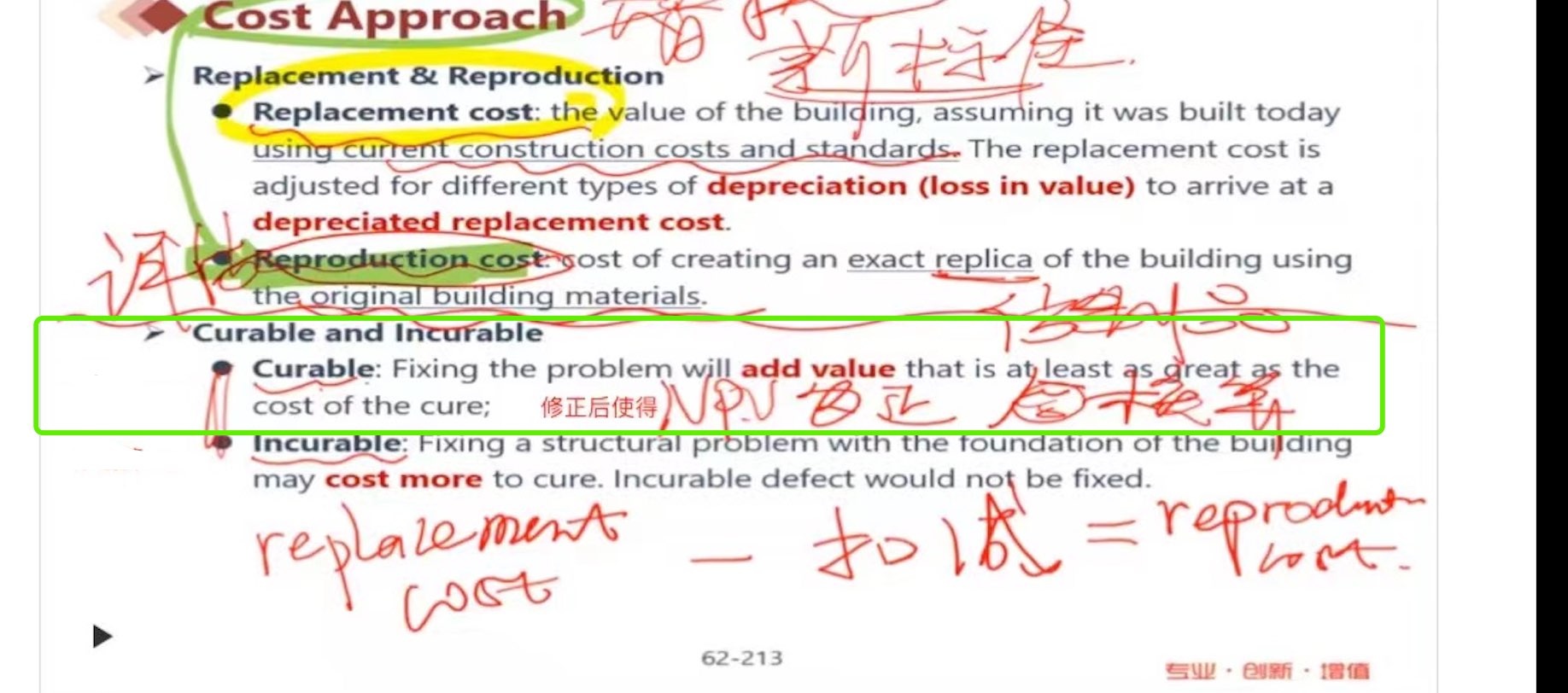 房地产估值重置成本法,如绿框所示,如果修好了能使房子增值,那修还是不修啊?修了就不是旧房子的价值了啊,要从新房价值里扣减掉?