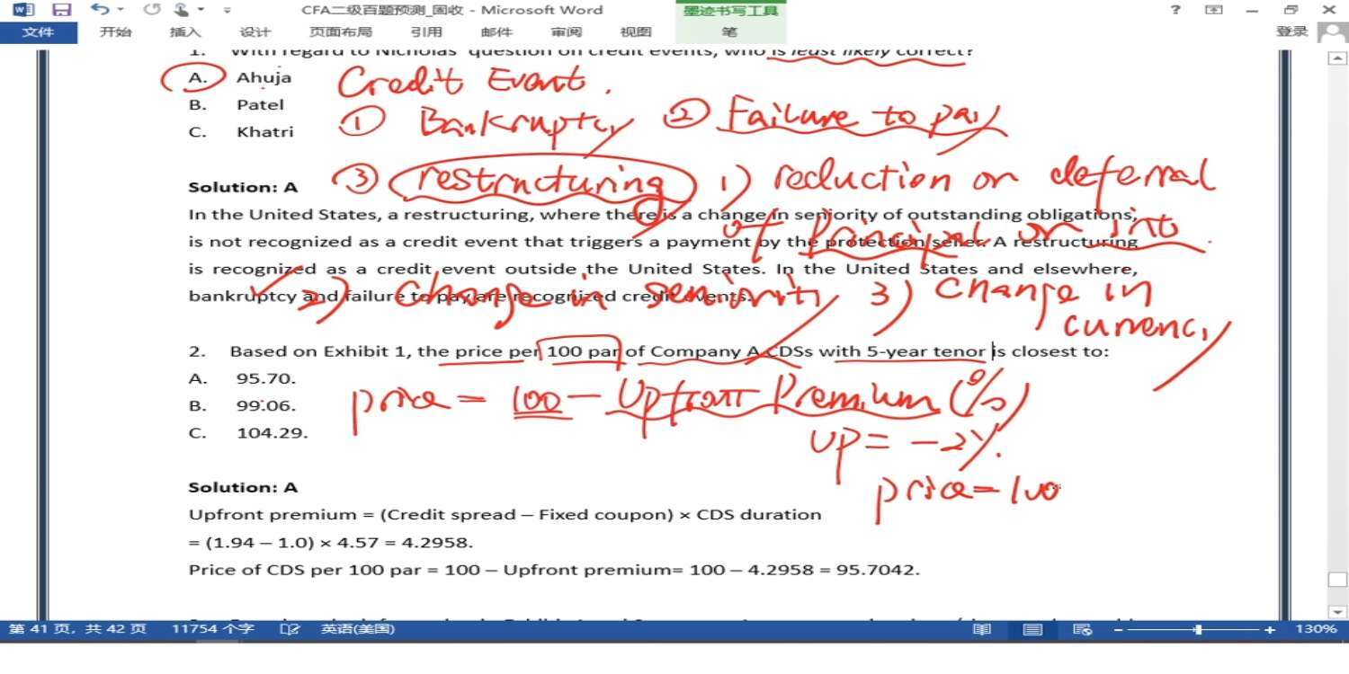 - CDS的long和short是不是反过来的?就是long CDS代表看涨目标公司credit,所以是卖出一份CDS合约?