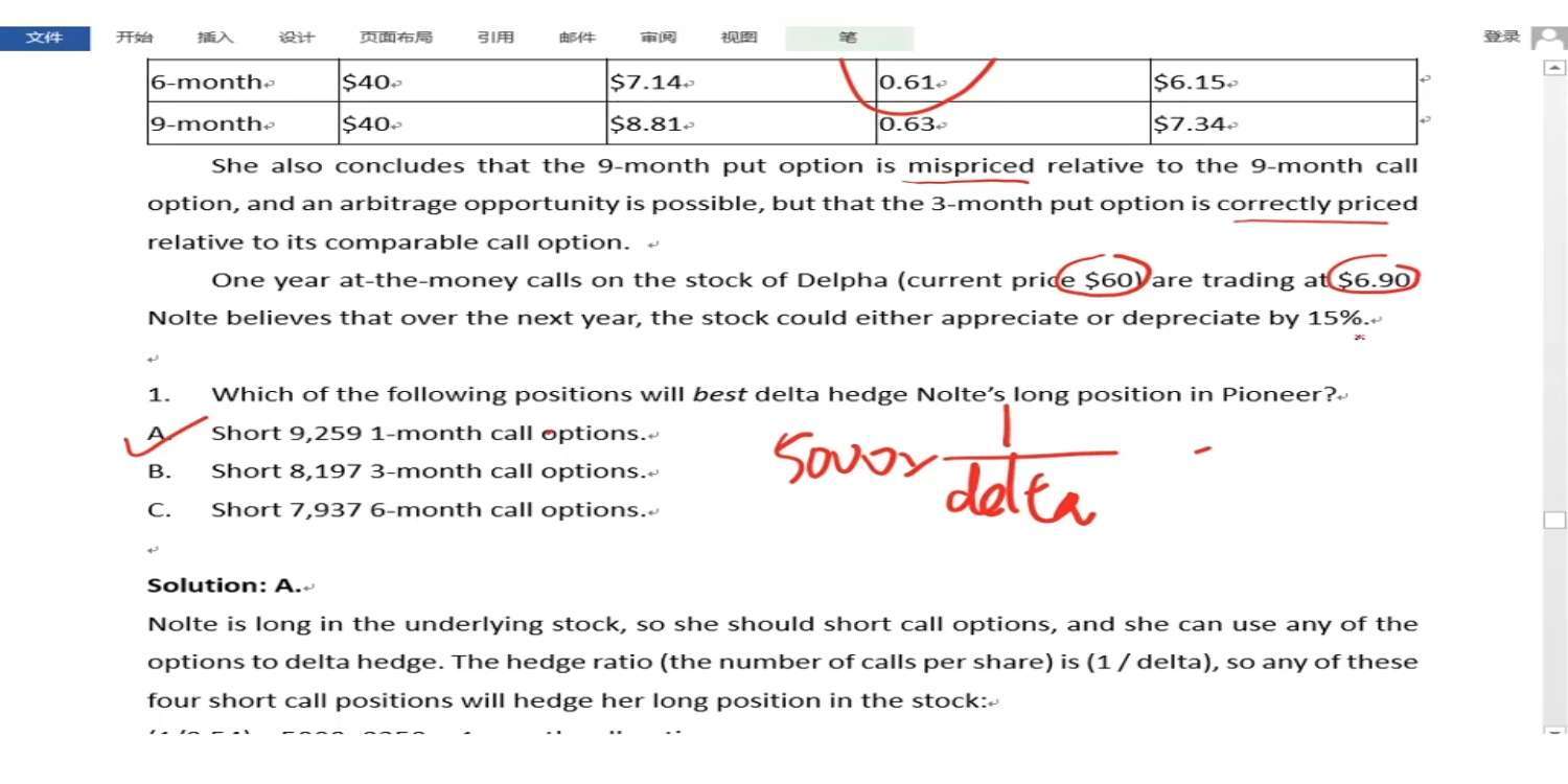 老师 这道题 我补充问下, 关于是1个月/3个月/6个月 call option 如何选择哈 假设都是9259份。