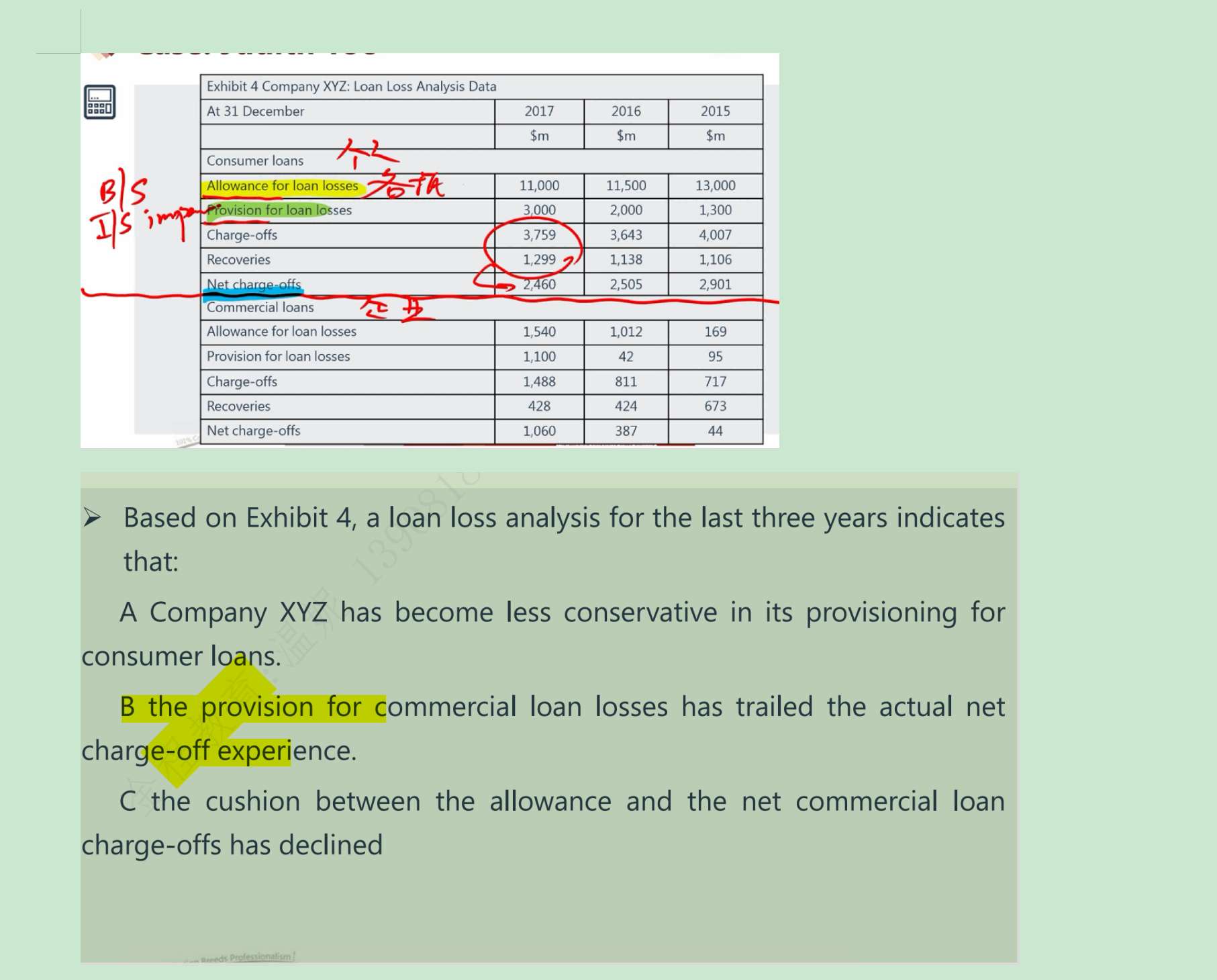 选择C,是不是简单通过把allowance和netchargeoff相减,发现difference越来越小,所以cushion变小了?
