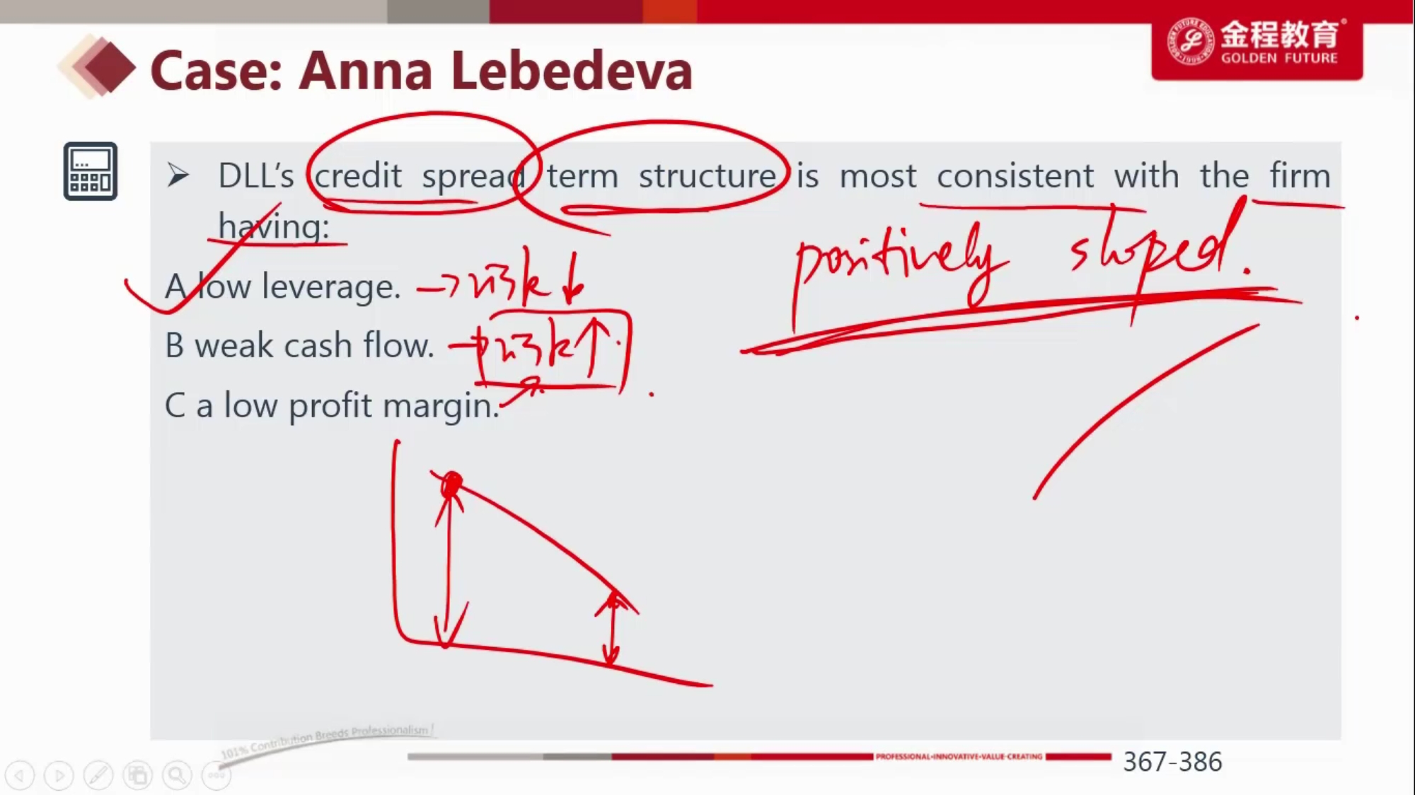 这道题比较困惑,既然是高质量的发行人,而且竞争力非常强。按照文章你该段落前边的statement1, Credit spread应该是flat或者微微上斜的,本题还说聚焦在斜率为正的 Credit spread……该发行人算是个中上等信用质量的发行人,否则他的spread不应该是上斜的呀,应该是平的或微斜向上呀……