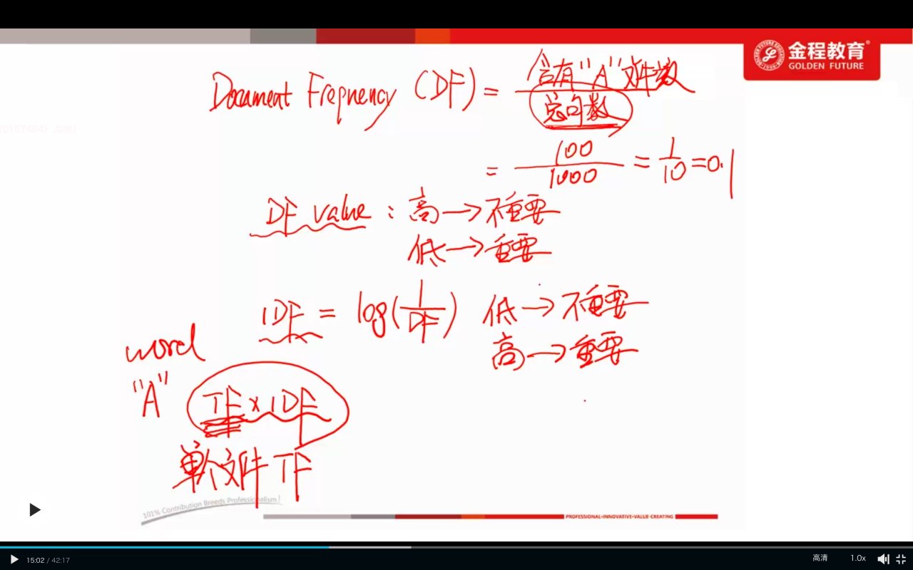 没听明白DF到底是单个文件还是文件集的指标?图1DF公式的分母总句数不是说是文件集的句数吗?为啥后面的TF-IDF又说要和DF单个文件集统一都是单个文件?