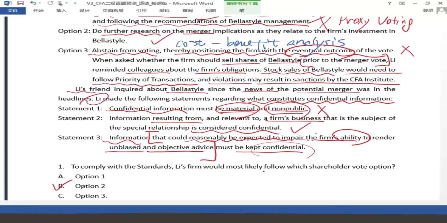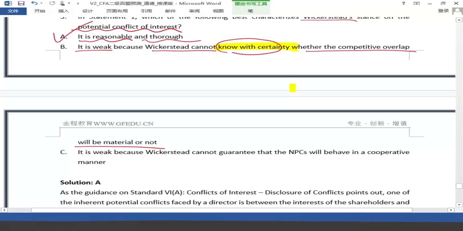 这里W人士说的话怎么就可信了呢,我记得有一个其他题目,新雇主保证来工作的人他做的业务范围和他在原来公司的业务范围不重合,那题的正确答案就说这新雇主的话不可信,因此这个人在那里工作可能违反conflicts of interest什么的。这一会某人说的话能信,某人说的话不能信,怎么判断?