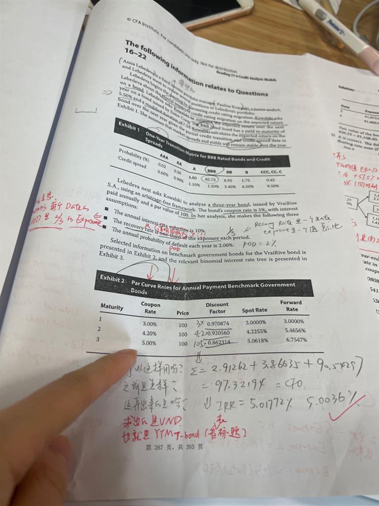 想问下par curve rate的coupon rate在使用二叉树的bond的计算中是不是基本上用不到?二叉树上面的利率以前说都是forward rate,现在说是一个benchmark rate,是不是只有在二叉树floating rate bond里面涉及到在二叉树上的利率的基础上再➕%像18题就用二叉树上的利率直接折现了