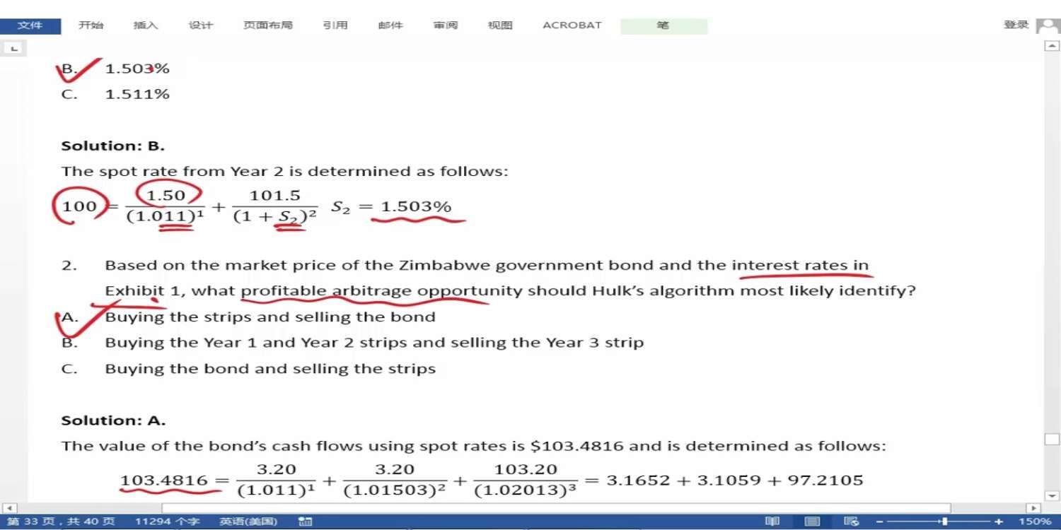 老师好,如果用par rate 求spot rate的方法叫bootstrapping, 那么用(1+1.91%)*(1+1.1%)=(1+S2)^2这个方法求S2,是什么方法,有专有名词吗?用boostrapping 方法算出的spot rate是1.503, 而用(1+1.91%)*(1+1.1%)=(1+S2)^2 算出的spot rate是1.504, 稍有不同,这两个方法算出的rate是否应该一致?这个不一样说明什么问题,可以从这个不一样发现套利机会么?
