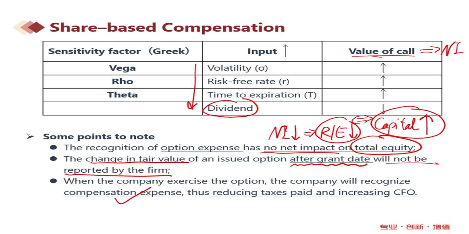 老师说期权授予日之后的 option fair value 变化不会对 财报造成影响,那么那些希腊字母的变大变小,是在什么时候影响NI的变大变小的呢?