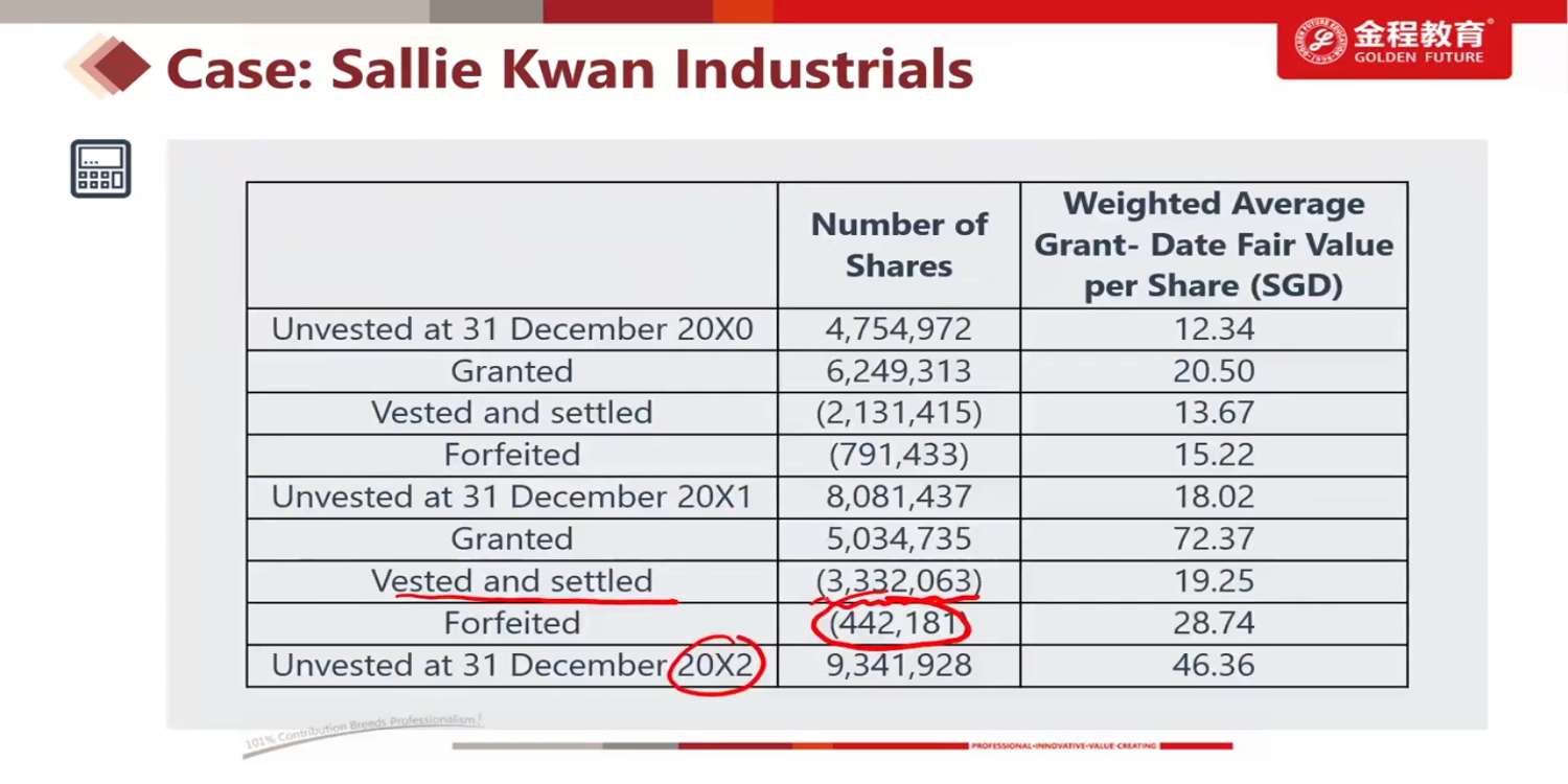 其他答疑中的这部分“19.25就是grant date的FV。 举个例子,第1年有grant,第2年有grant,然后第3年settlement,那么settlement中的股票,部分可能是第1年grant的,部分可能是第2年grant的,所以要计算一个weighted average grant-date fair value,例如截图中的19.25就是加权平均计算出来的,这部分被vested的由过去不同时间granted的加权平均fair value。”确定没有错吗?表格上明明写的是vested and settled,即使这个解释行得通,我们怎么知道它此处表达的不是vested and settled而是加权平均fair value?这两个是一回事的背后逻辑麻烦再讲一下,或者提供一下相关说明材料。