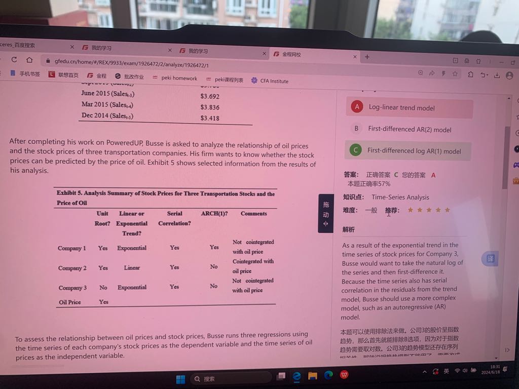 为什么company 3是指数分布可以首先排除答案B:一阶差分AR(2)模型?谢谢