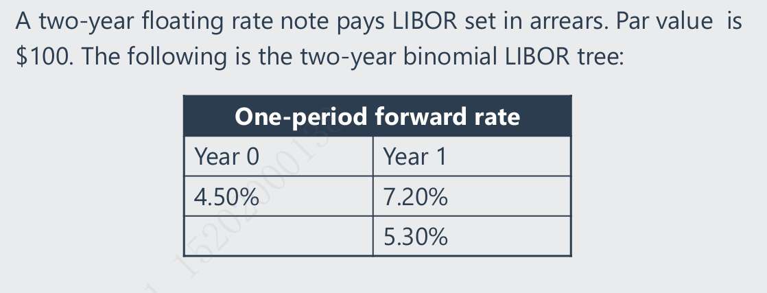 1.计算浮动利率债券的利率二叉树,为什么是i0 →fH(1, 1), fL(1, 1), 远期利率,这里也是fH(1, 1)=fL(1, 1)(e^2σ)吗?;而利率二叉树里面,是i0 →i1,H, i1,L, 且i1, M=f(1, 1), 二者之间的差别是什么? 2.一级,conversion ratio = face value/conversion price 而这里的 conversion price = issue price /conversion ratio ?