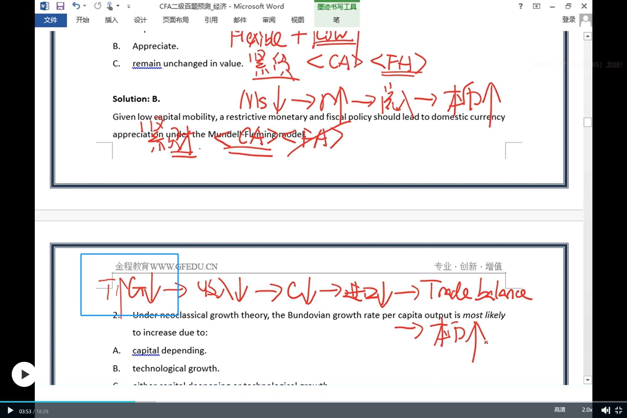 - 老师,第三题答案的意思是:1.因为宽松的货币政策,导致加元利率下跌,导致加元贬值?2.但是,如果利率下跌,也就是分母上的百分比下降,不是会导致价格上升吗?。3.从而短期看是depreciation,但是长期来看,会回归到均值,所以是appreciation?
