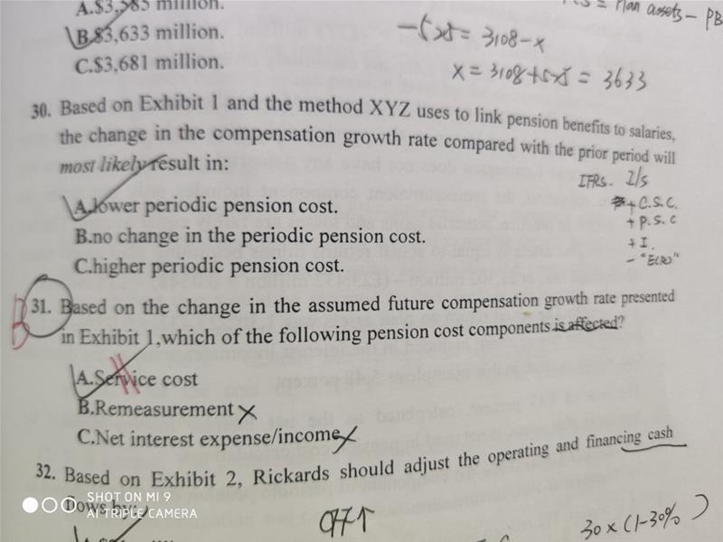 R15 31题 为什么A不对?工资降低,servive cost也应该减少啊。上一题30题的答案选A就是这个逻辑。为什么31题的A又不对呢