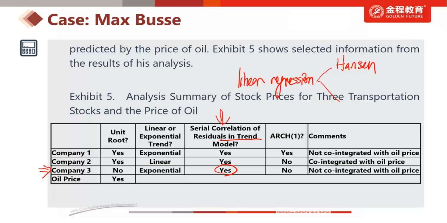 这道题的方程用x,y写出来一下?还有,这里是oil price(x)存在单位根,company 3(y)不存在单位根;如果是相反:y存在单位根,x不存在单位根,用一阶差分来修正是不一样的么,这种情况方程长什么样?