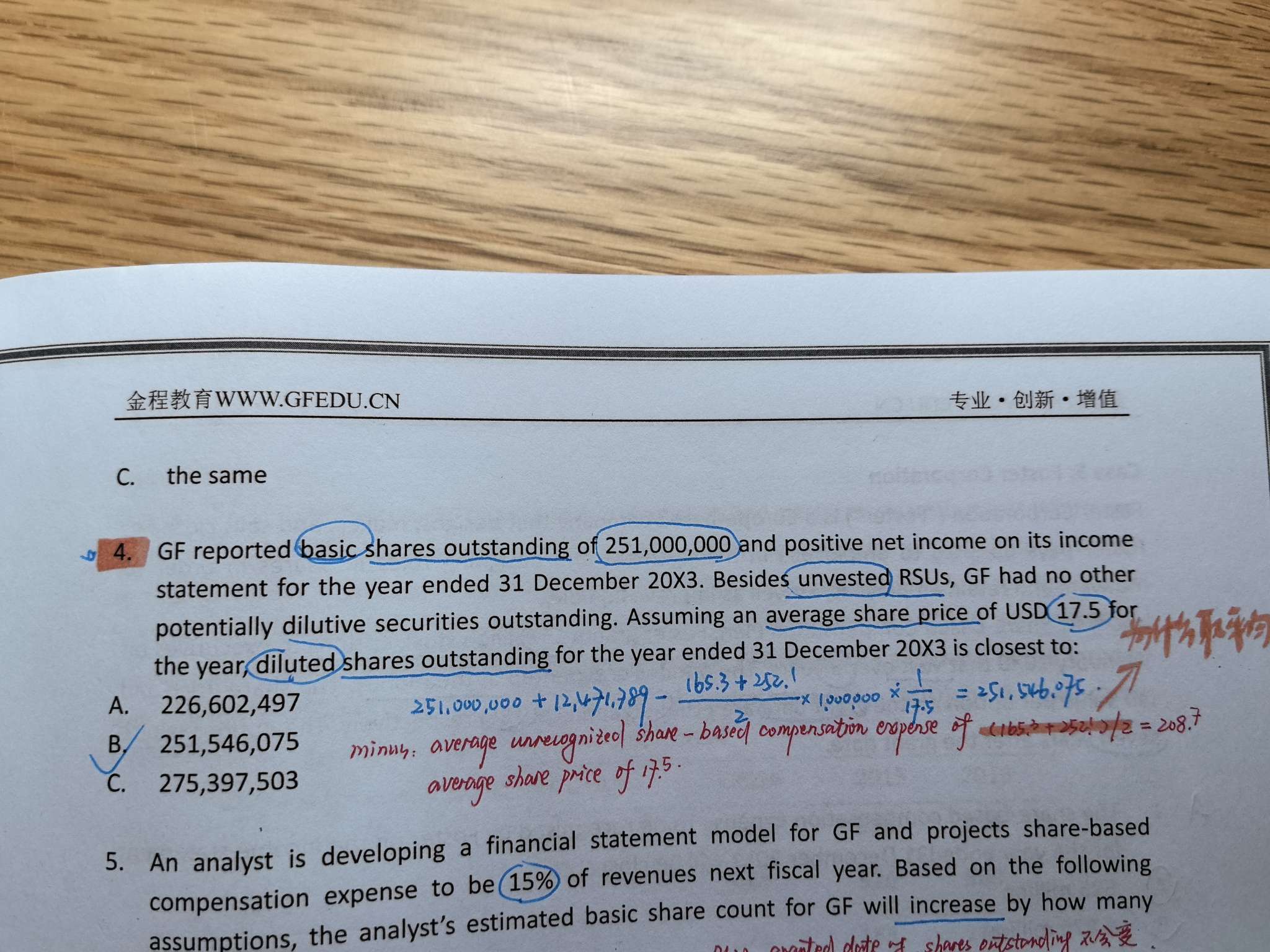 第4题,未确认的股权激励费用为什么要取2022年和2023年的平均数?题目中的2022年和2023年未确认的股权激励费用已经是期间发生额了,取平均数的作用是什么呢?