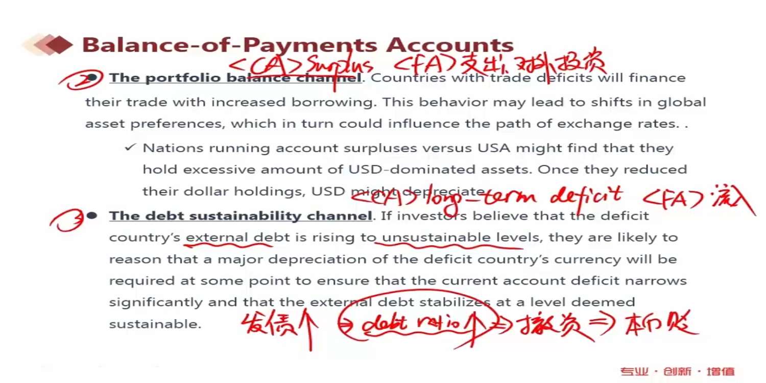 对于第二点portfolio balance channel:CA surplus(外汇储备多),FA支出(对外投资),他国币种也就是外汇币种可能会贬值,这样理解对吗?