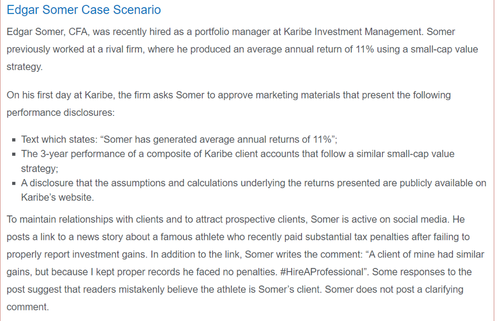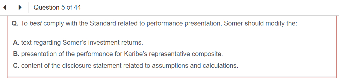道德,MA2-Q5 To best comply with the Standard related to performance presentation, Somer should modify the: