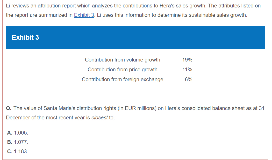 会计,MA2-Q15 The value of Santa Maria's distribution rights (in EUR millions) on Hera's consolidated balance sheet as at 31 December of the most recent year is closest to: