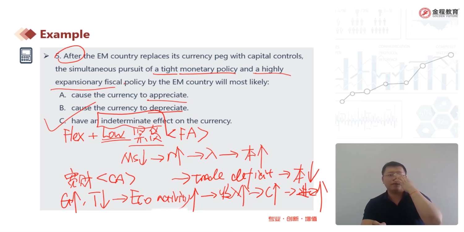 flexible+low mobility情况下,如果是紧缩货币政策不是应该看CA账户么?例题中怎么看FA呢?不是说low mobility情况下CA账户优先于FA账户么?