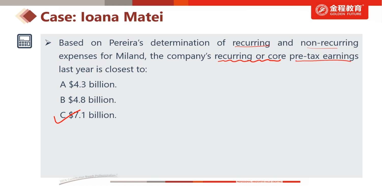 这道题为什么要加回non-recurring部分?不是算的是core部分吗,还有,题干部分我不是很理解,说this include .... 那不是代表5.4部分已经包含了这几个费用吗