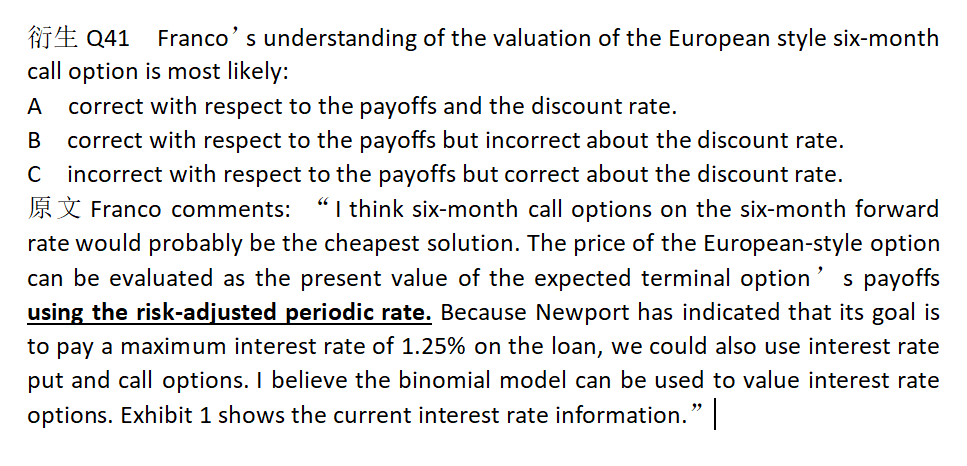 衍生,Q41,考察什么知识点?基于风险中性利率折现,欧式的call option的payoff指Max(0,S- X)吗?case中关于payoff的描述怎么理解?请老师讲解一下,谢谢