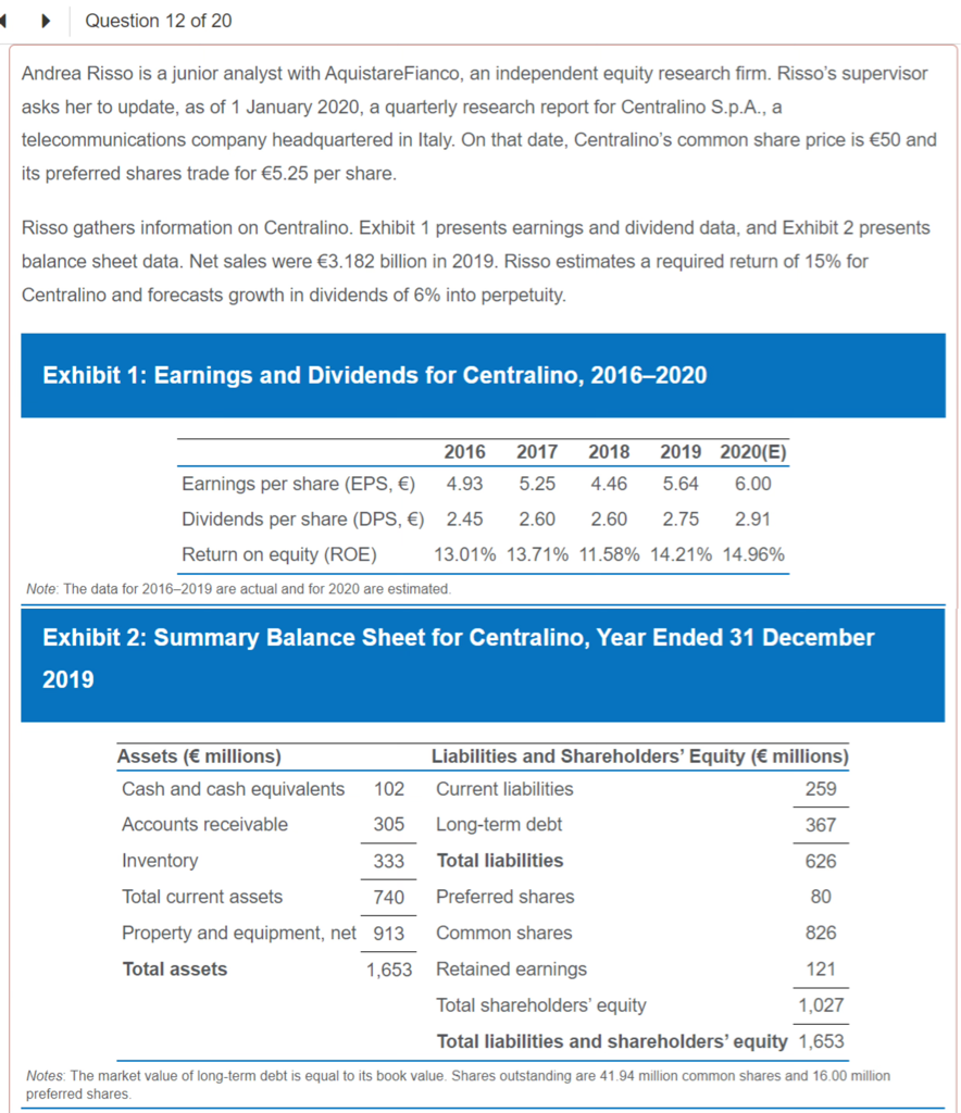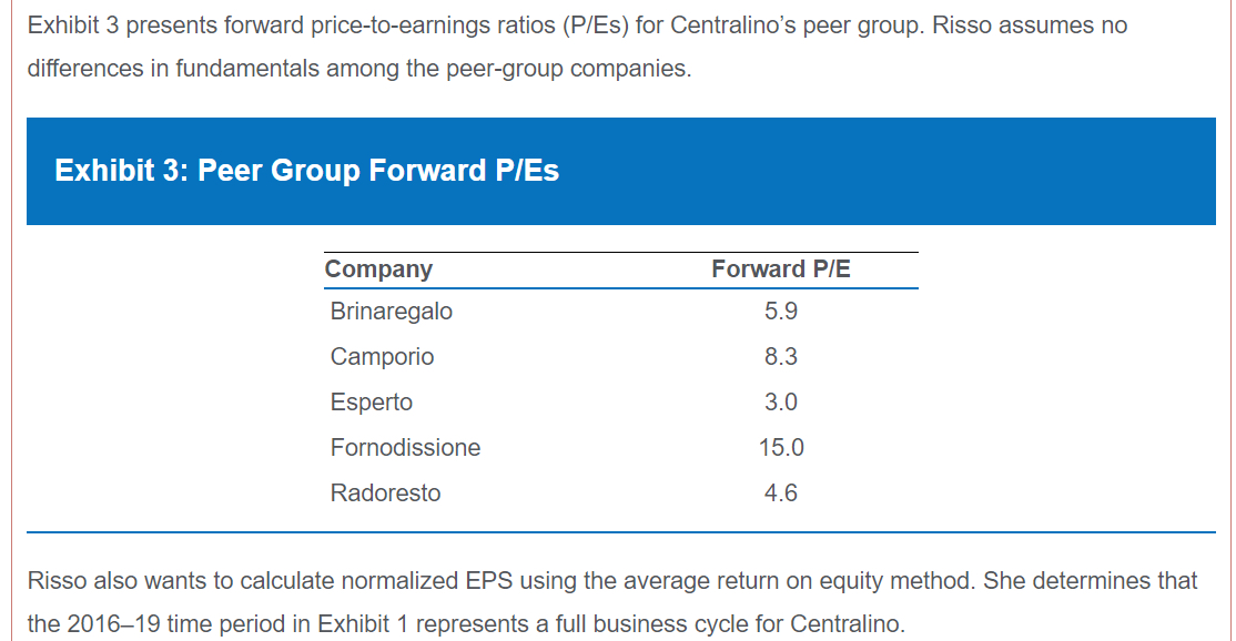 权益,第4章,Q12,forward P/E for Centralino=8.3是那来的,case中只说了可比公司Camporio公司的forward P/E =8.3。题目的全文见截图,请老师讲解谢谢