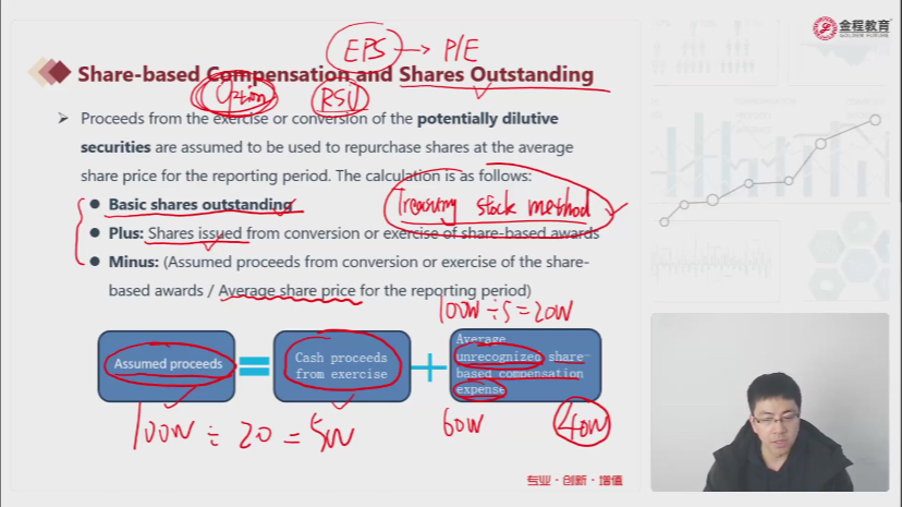 第5题,assumed proceeds是啥意思?包含cash proceeds和unrecognized expense在哪里讲过???unrecognized expense指的是什么,和前面两年的unrecognized expense有什么关系?为什么会有unrecognized expense?无法理解为什么会产生这项expense。