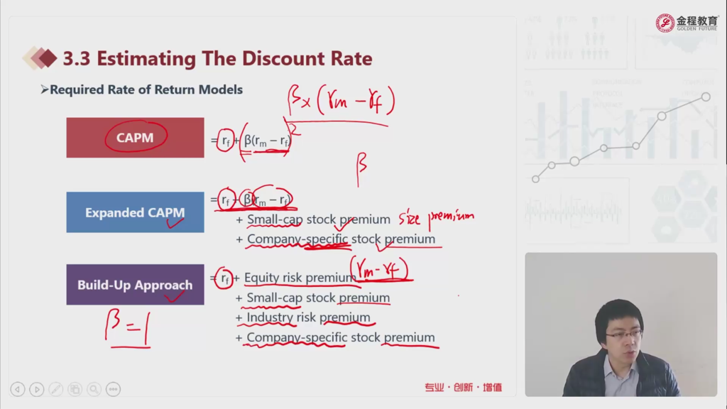 此处Expanded CAPM和build up公式和公司金融课程里的都有差异,差了IP,考试时以哪边为准?