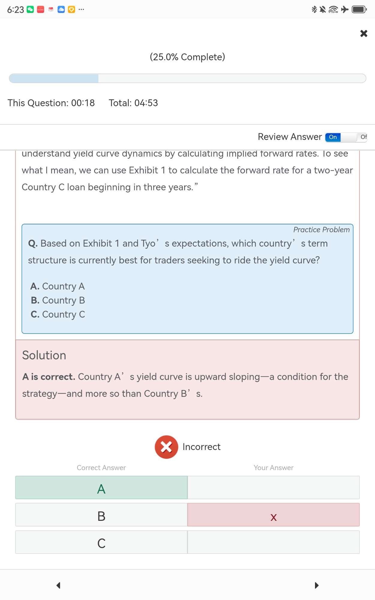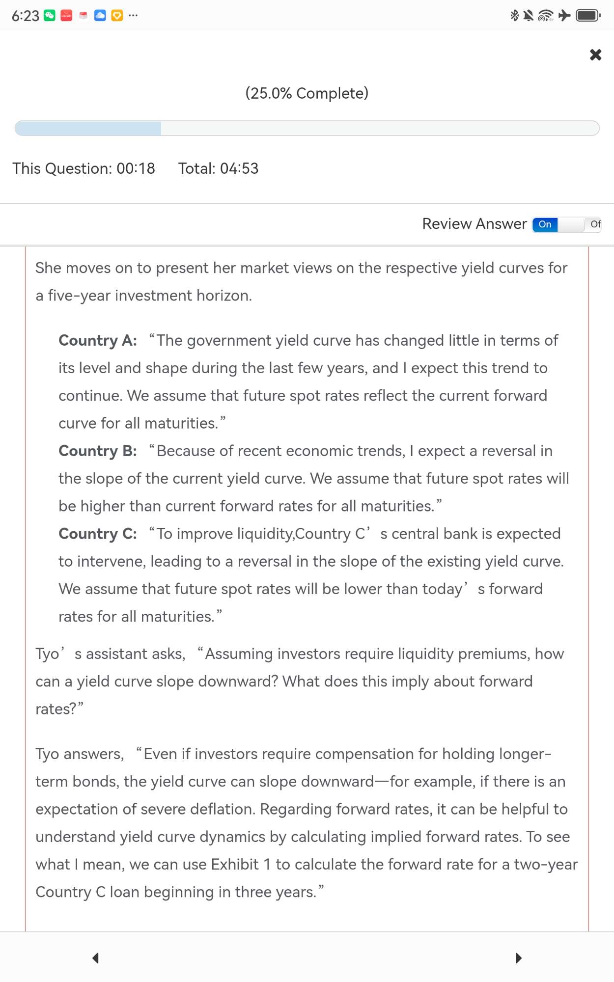 本题怎么看出来countryA的收益率曲线是向上倾斜的?