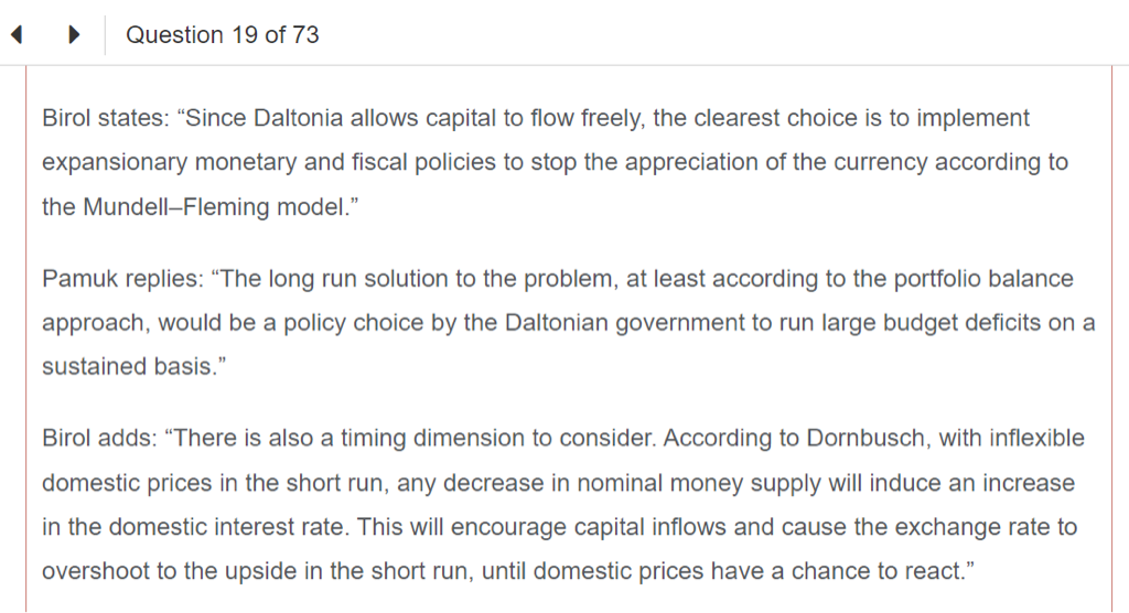 - 老师,第三题答案的意思是:1.因为宽松的货币政策,导致加元利率下跌,导致加元贬值?2.但是,如果利率下跌,也就是分母上的百分比下降,不是会导致价格上升吗?。3.从而短期看是depreciation,但是长期来看,会回归到均值,所以是appreciation?