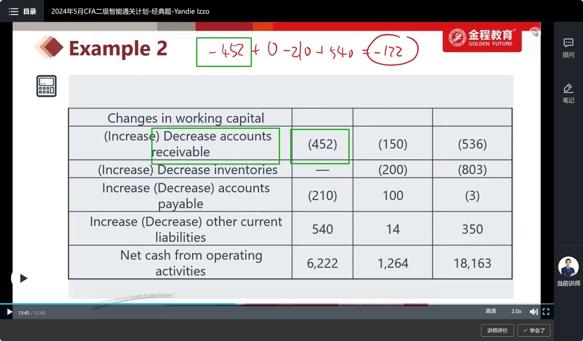 应收账款的减少,也就是说钱收回来了,这样应该是增加了营运资本呀,这里为啥是减去452,没想明白