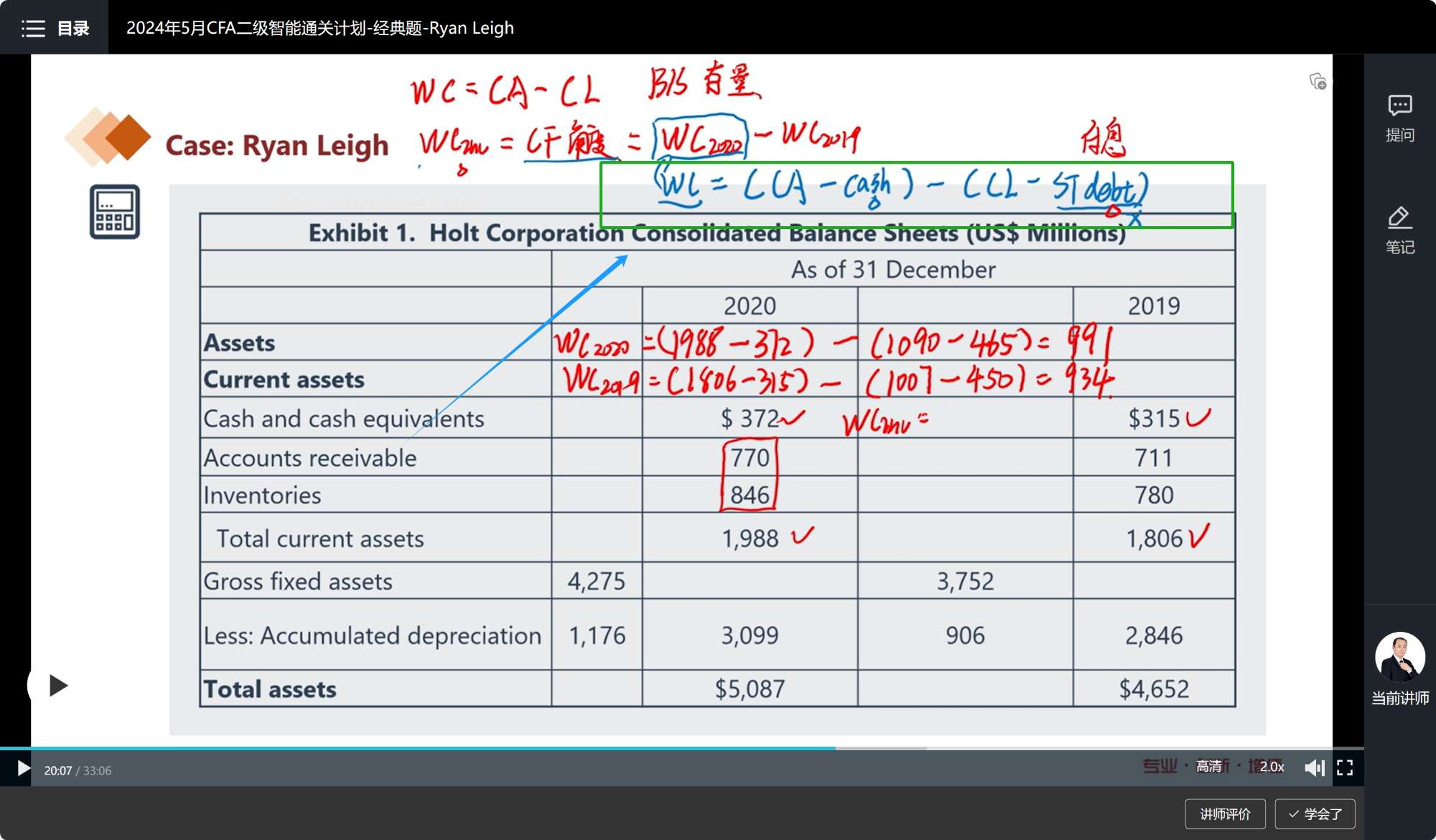 在计算这个营运资本时候,我还是没搞明白,麻烦详细讲一下。我理解就是计算增量的营运资本啊,而营运资本=流动资产-流动负债