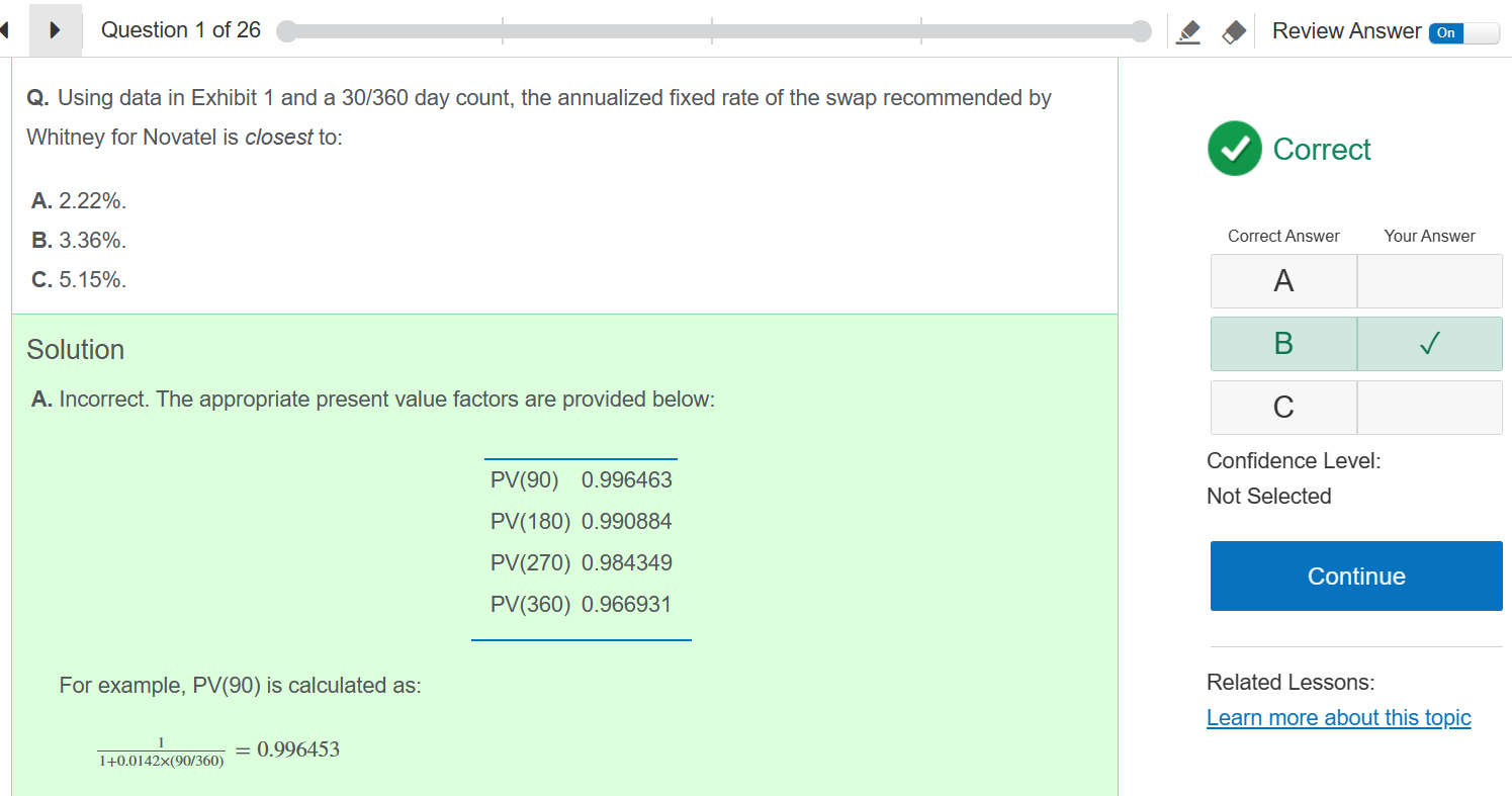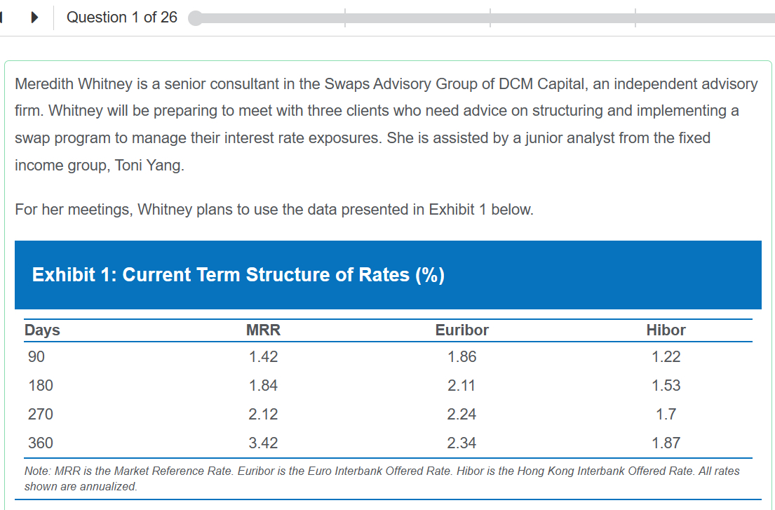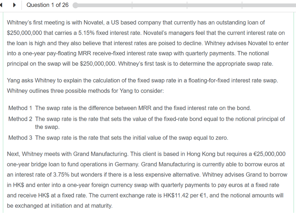 衍生,Q31 年化的swap rate recommended by Whitney for Novatel 在case中没有这个信息,无法判断用市场推荐利率MRR计算年化的swap rate。