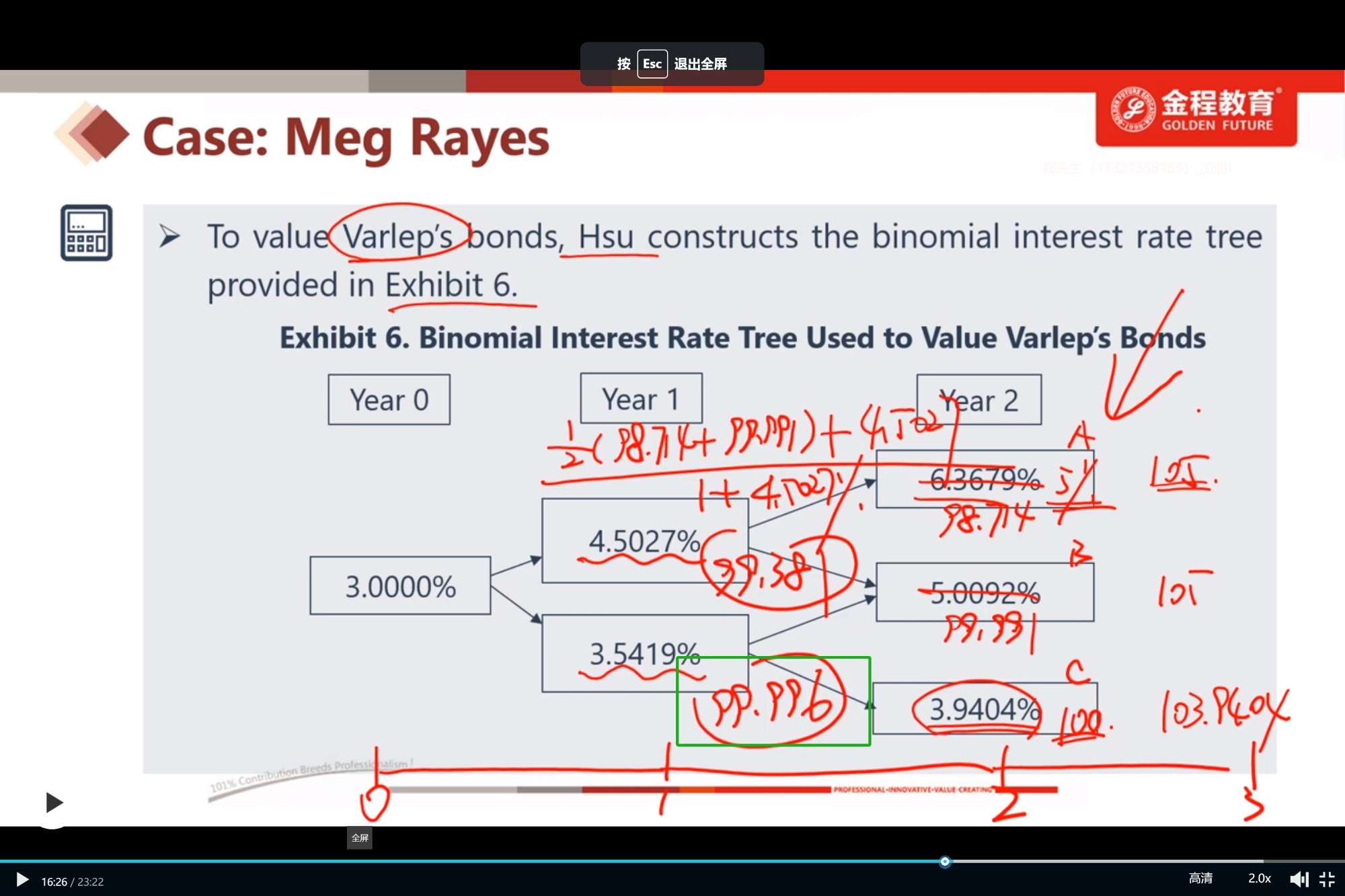 第五题这里就很奇葩啊,我怎么算也得不到这个数据,我的计算过程:(0.5*(99.991+103.9404)+3.5419)/(1+3.5419%)=101.8985,视频里计算错了?