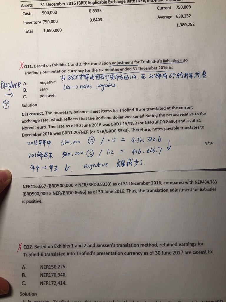 会计第三章第11题,求B公司折算成母公司货币后的lia,在2016年前六个月内折算调整金额,年末较年中减少了,不是应该选择negative吗?为啥答案说positive呢?谢谢