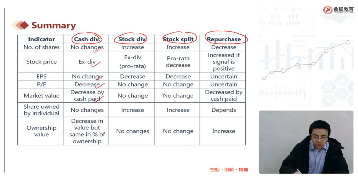 老师,(1)能不能展开说下EPS分别对四种股利的影响,不理解其中为何不变或者下降。(2)另外,share owned by individual和ownership value怎么翻译。