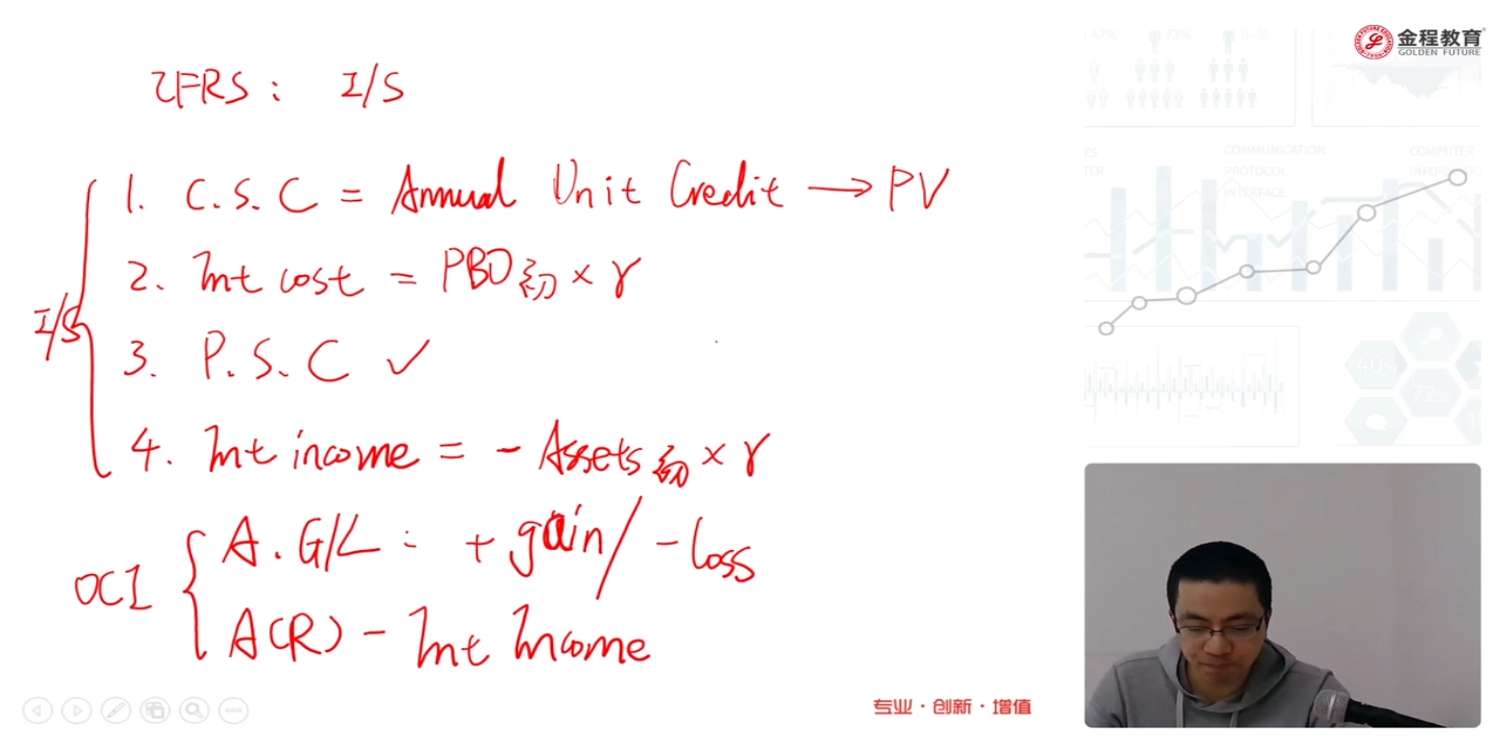 OCI第二项没搞懂,在实际情况下,如果用PBO去进行实际投资,那么获得的就是Actuarial return,那么在IFRS下I/S中为什么又要多出一项Interest income,直接在IFRS的I/S中记录一项 -Actuarial return 用来抵减成本不就行了?OCI的第二项存在岂不是多此一举?
