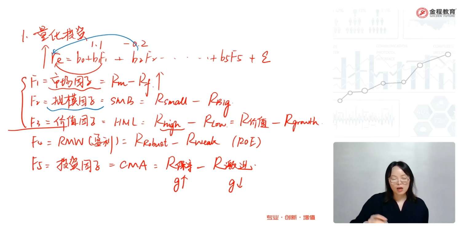这里问一下,课程里面讲的例子B1=1.1,B2=-0.2,说明1.1市场因子成正相关,-0.2成负相关,跟现实中实际市场分析时真实的情况一致(即市场因子跟真实情况正相关,跟规模因子负相关)?②考试的时候是否也会根据这种实际情况来考?