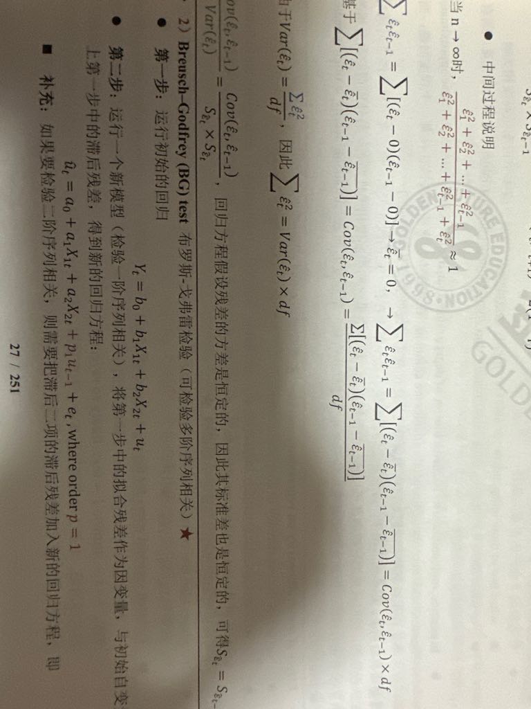 最下方第一步滞后一期的残差是什么意思,怎么从第一步理解滞后一期残差,一组数据只能有一组残差,那滞后的残差怎么能是同一组数据呢?应该不是原方程的残差吧?应该是另外一组滞后一期的数据产生的残差变量组是
