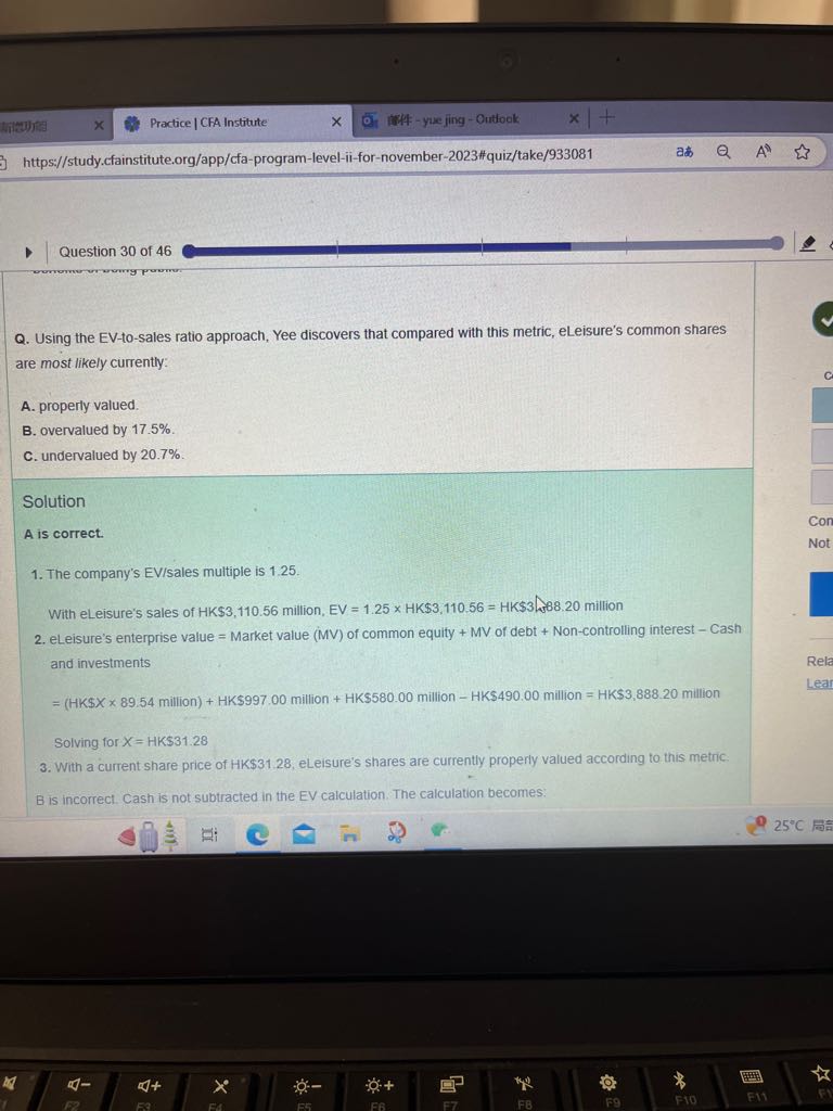 这个non controling interest在算roe的时候是剔除了的,为什么在算EV的时候又要包含进去 又是第一次见