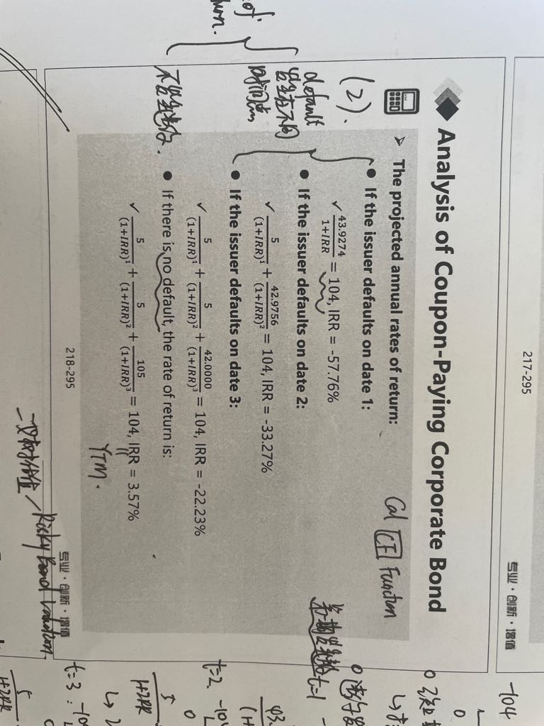 Fixed Income基础课讲义 218页关于计算每一时刻违约的IRR 请问这里的104是不是FV(vnd-cva)的那个104.4178?
