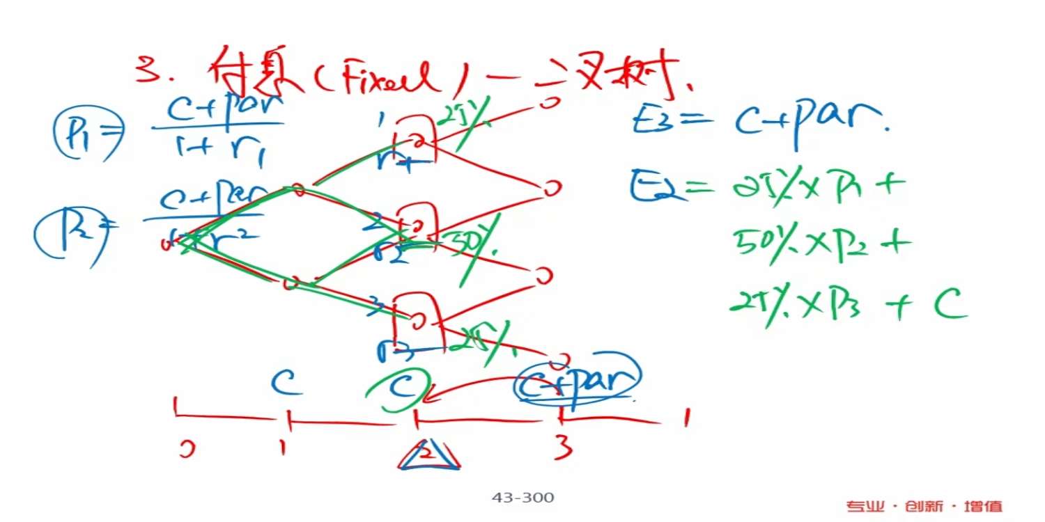 如果是1点,就是P1和P2各占50%组成P,加上Coupon,用1时间点上面一个node折现,下面一个一样求,最后平均得出E1是吗