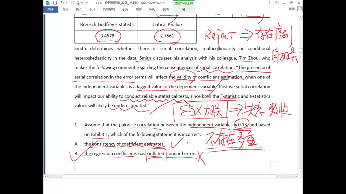 Q4的B选项对应的那句话,感觉应该是说when x作为的y的滞后项吧