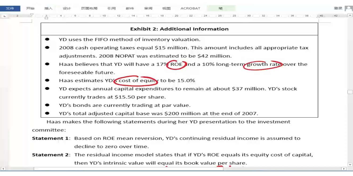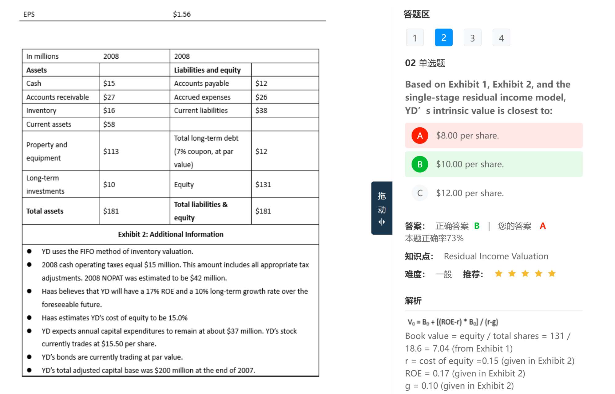 请问这一题,2018年的剩余收益是不是应该是2018年的净利润,减去2018年初的BV*r,如果用2018年的BS报表中equity除以股数,得到的貌似是2018年末的BV