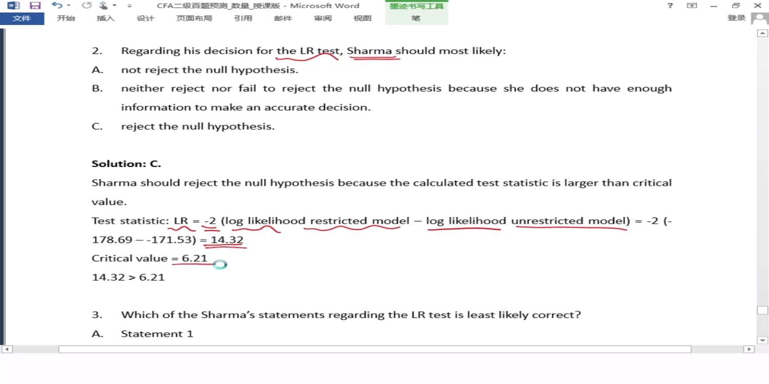 这里LR test原假设是受限吗?极大似然估计值实际代表意义是什么?为什么越大越好,为什么值是负的?有没有办法能从本质上讲讲明白?极大似然估计是为了做什么,就为了看模型要多一些变量还是少一些吗?